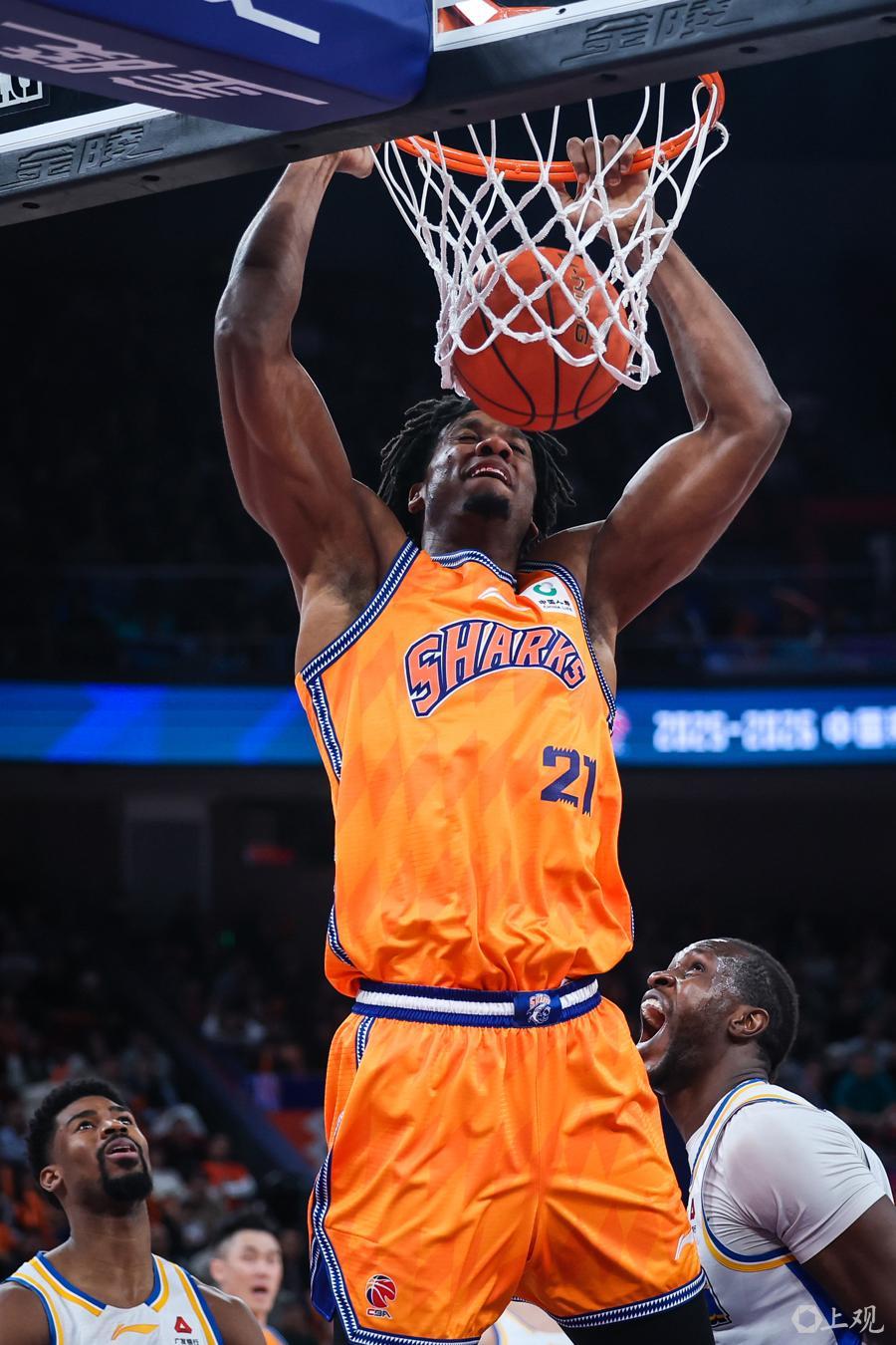 上海队则派出张镇麟、李弘权、刘铮与双外援古德温、怀特塞德的首发阵容,开局便打出17比8的攻势,迅速占据主动。