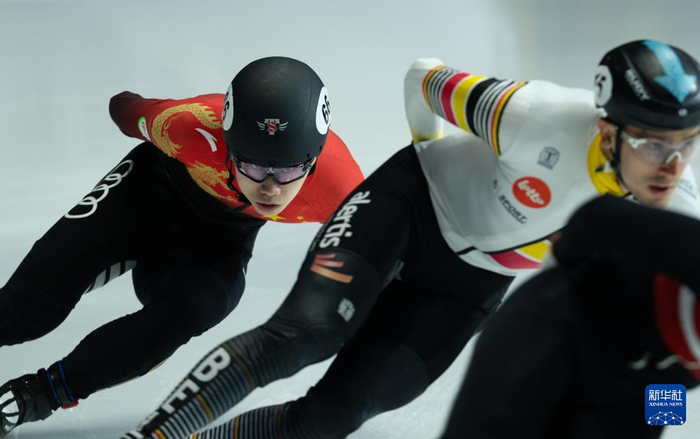3月15日,中国选手张柏浩(前)在男子1000米四分之一决赛中。最终,他未能晋级半决赛。